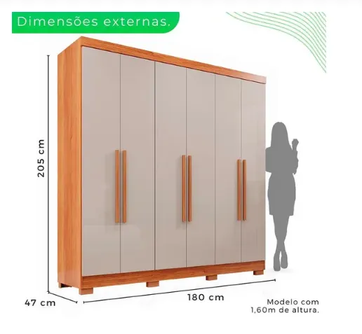 Este lindo Guarda Roupa com Pé 6 Portas 2 Gavetas é um produto de excelente qualidade, diferenciado pela sua resistência, durabilidade, funcionalidade e beleza, ele é a melhor opção para deixar seu dormitório muito mais arrumado e convidativo. Com corrediças telescópicas que permitem uma abertura total das gavetas, parte interna espaçosa, divisões internas que oferecem praticidade e organização, puxadores de madeira que garante maior durabilidade, suporte embaixo das gavetas para dar uma sustentação reforçada e cabideiro em alumínio. Se encaixa facilmente em vários estilos de decoração com cores modernas. Aproveite, você merece!